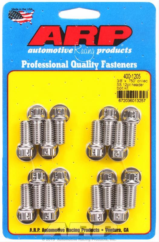 ARP stainless steel header bolts are 15 percent stronger than Grade 8 steel. These 12-point bolts have a compact head that will allow a socket to fit into those tight, tricky spaces next to the headers. These bolts are both highly corrosion-resistant and heat-resistant. They have a polished finish and come in 12-point and hex-style heads. Washers are included.