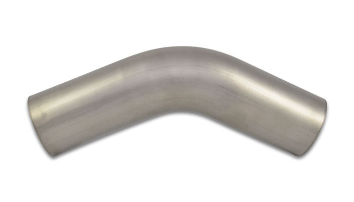 vibrant tubing, mandrel bend, 45 degree, cp1 titanium, natural, 19 gauge (1mm) wall thickness, 3.00 in. o.d., 4.75 in. centerline radius, 5.00 in. x 5