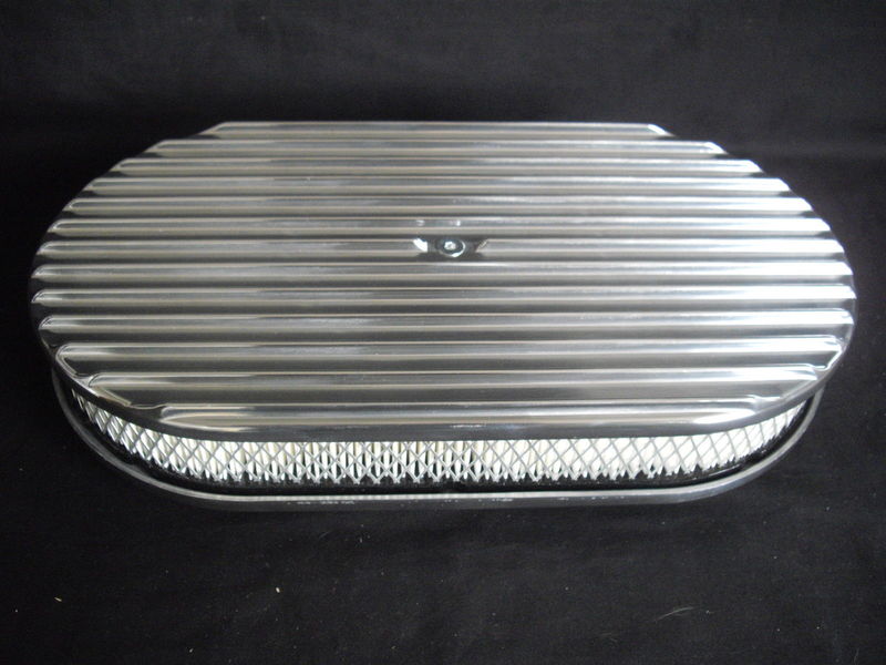 polished aluminium full finned 15 x 2 inch oval to suit 5 1/8 inch neck carburettors ie Holley carter AFB etc