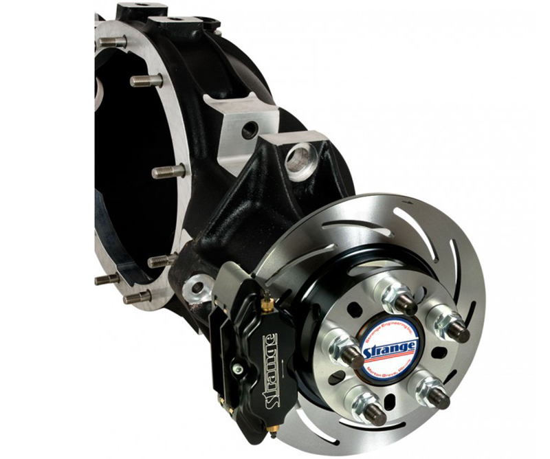 Strange Engineering’s Aluminum housing is standard equipment for top chassis builders and champion racers. The aluminum housing is cast from aerospace grade aluminum and reinforced with vertical and horizontal ribbing along the back of the housing to minimize housing flex. The aluminum housing is machined to exacting standards; allowing for all mating pieces to amalgamate into one working piece. The tolerances that the Strange aluminum housing is machined within are extremely difficult to duplicate with a steel housing. Besides providing the best foundation for mating pieces, the aluminum housing packages are often less expensive than sheet metal housings. The competitive pricing is largely due to Strange’s substantial investment into the latest Mazak machinery and the talents of our experienced machining staff. Complete assemblies are available in both 35 and 40 spline configurations and can be ordered with or without brakes. Package prices are the same for 4-link and solid mount housings; however, 4-link packages do not include mounts.