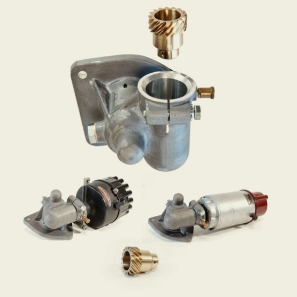 Vertex Style Angle Drive and Bronze Drive Gear (1932 to 1948)This cam-driven angle drive is specifically designed for use with 1932 to 1948 Ford flathead V8 engines, including the 1937 to 1940 Ford V8-60. It can also be used on a 1949 to 1953 Ford 8BA flathead V8 engine by utilizing an early 1939 to 1948 crank gear, camshaft and timing cover in place of the stock 1949 to 1953 crank gear, camshaft and timing cover. This angle drive is a 100% accurate reproduction of an angle drive originally produced in the 1930’s. It will accommodate either a Vertex Magneto or a Nash Twin 8 distributor. Minor magneto or distributor main shaft modifications necessary.