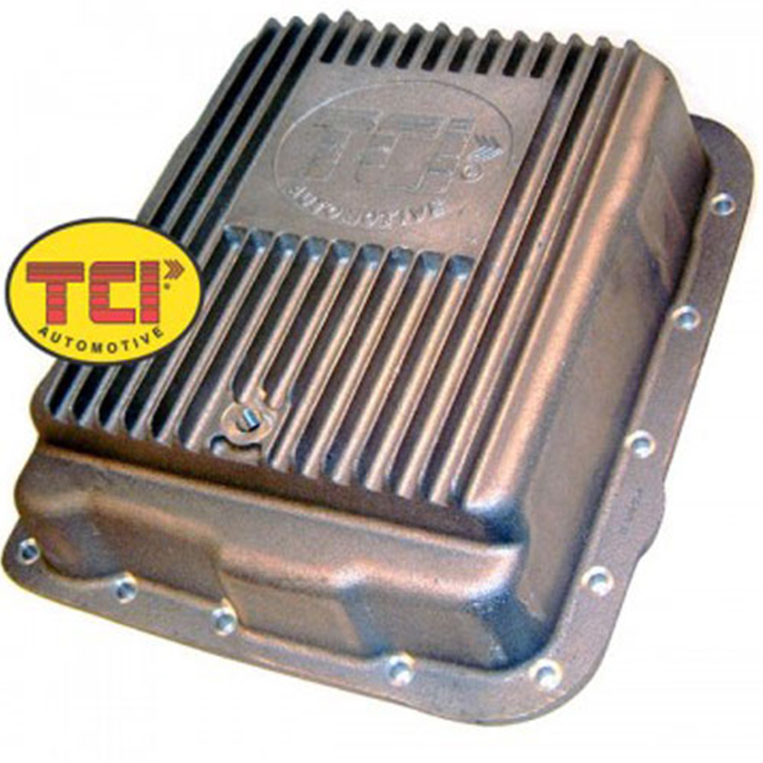 TCI Cast Aluminum Deep Transmission Pans contain cooling fins for faster heat dissipation, and are designed to add strength and rigidity to the transmission case. Each transmission pan comes complete with magnetic drain plug, pan gasket, stainless steel installation hardware, and fluid pickup extension when applicable. Requires no stock dipstick modifications.