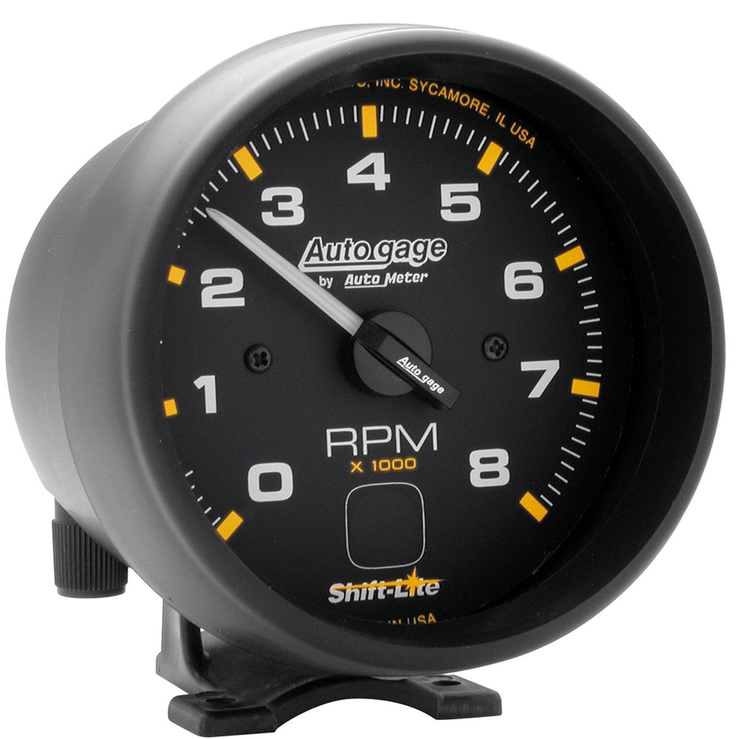 autometer gauge, autogage, tachometer, 3 3/4 in, 0-8k rpm, pedestal w/ shift light, black dial black case, each
