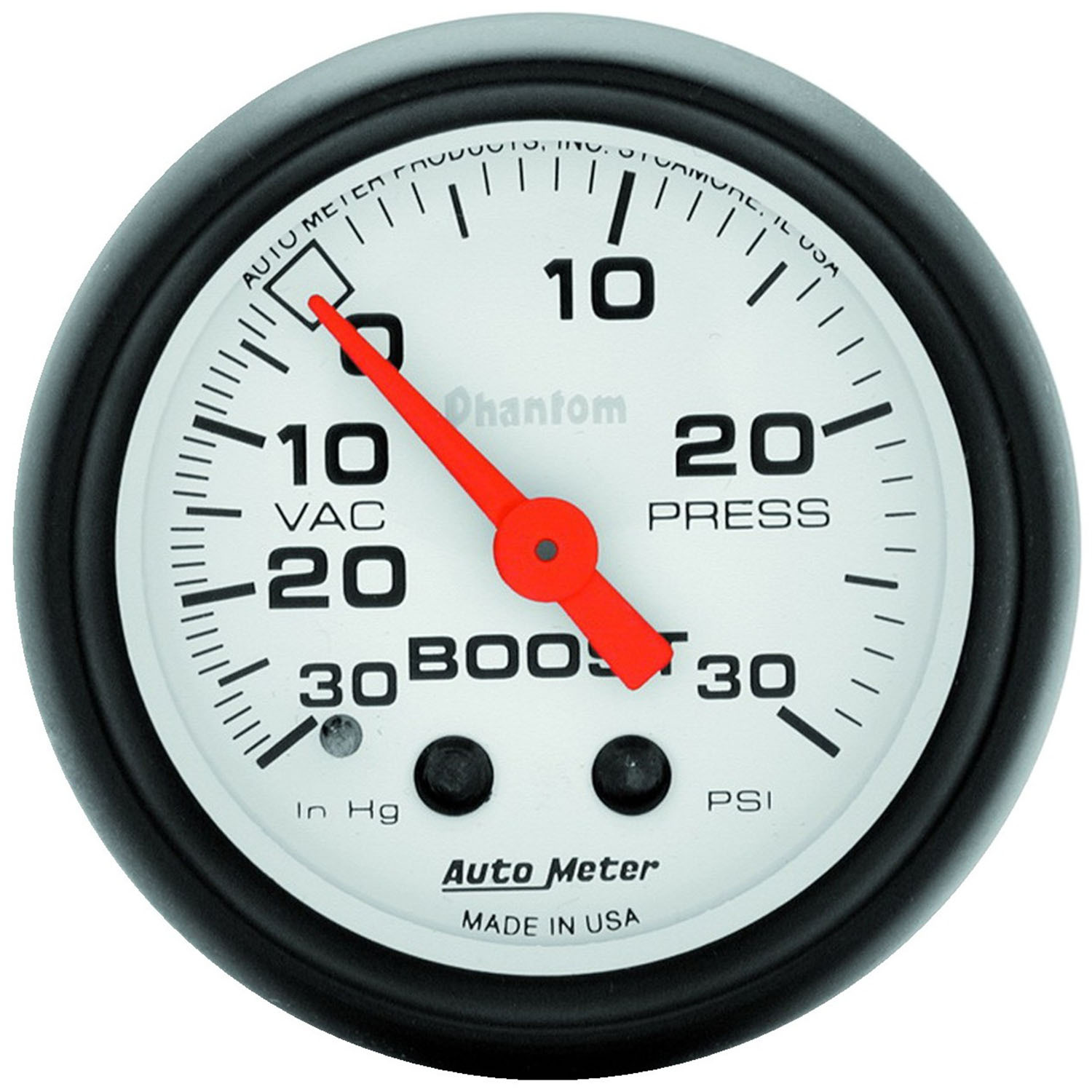 autometer gauge, phantom, vacuum/boost, 2 1/16 in, 30 in. hg/30psi, mechanical, analog, each