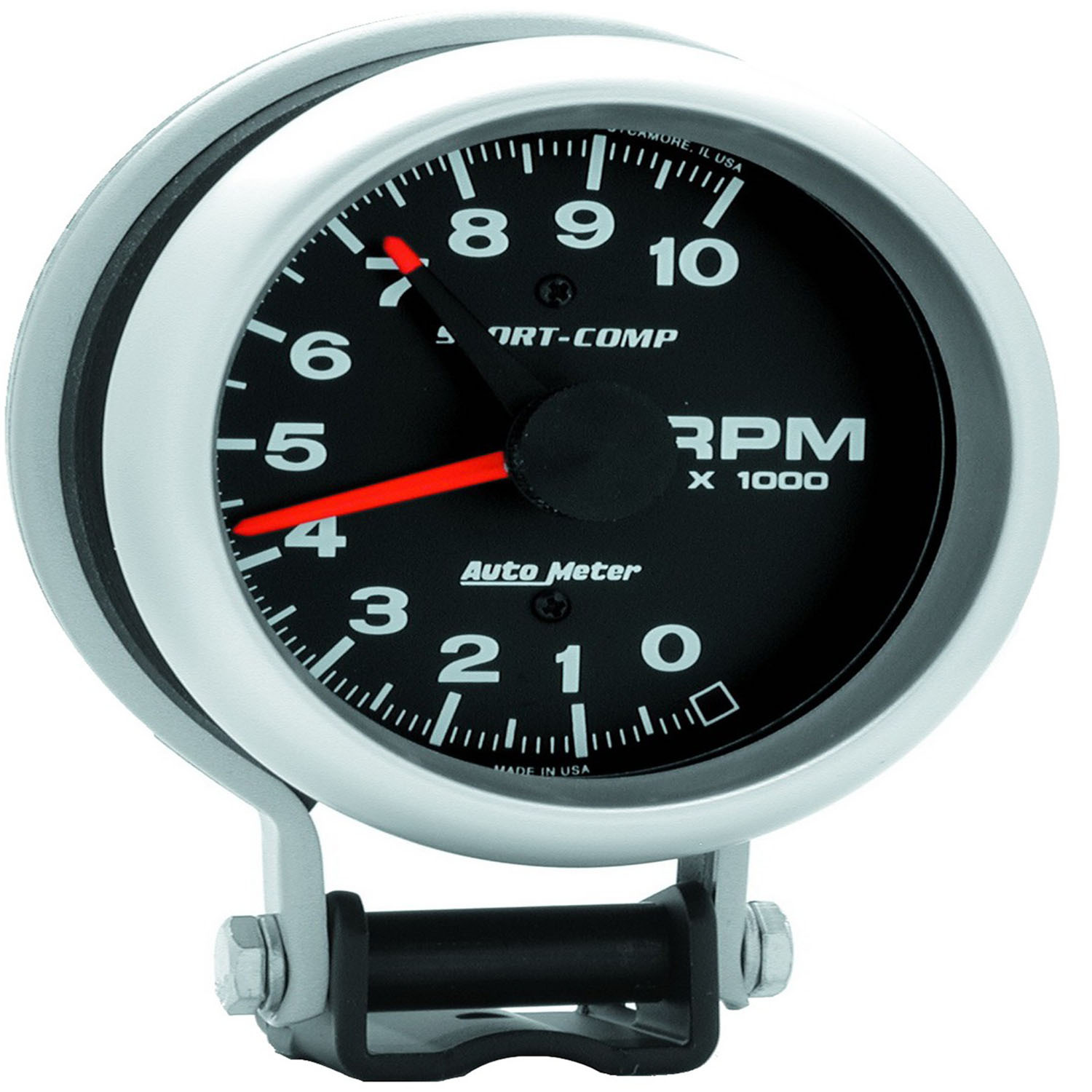 autometer gauge, sport-comp, tachometer, 3 3/4 in, 0-10k rpm, pedestal w/ red line, analog, each