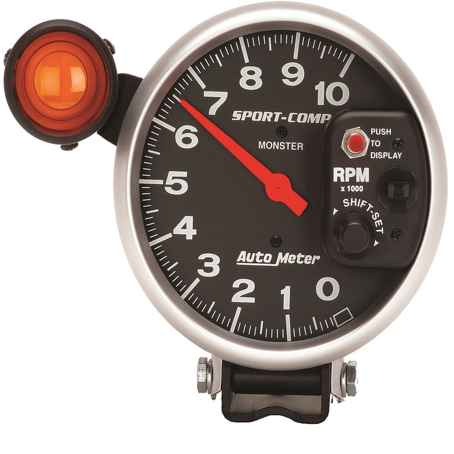 The original Sport-Comp Monster tachometers from AutoMeter have been on board for some of the most groundbreaking events in motorsports history. To own one of these 5 in. pedestal mount tachometers, is to own a piece of racing history. Advanced electronic circuitry and a precision air core meter provide fast response and smooth movement under the most demanding conditions. The rubber-lined shock strap absorbs the rough pounding and vibration commonly found in sportsman racing. Shift-Lite versions signal any pre-selected rpm to notify the driver when it's time to shift.