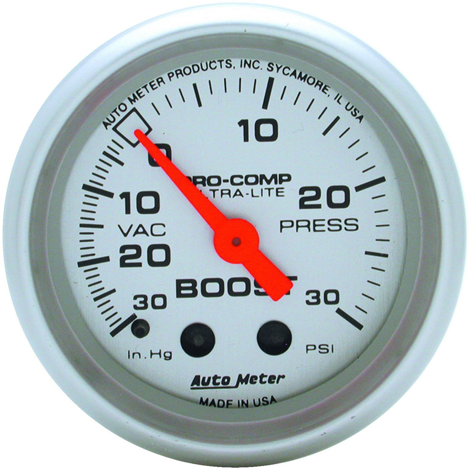 autometer gauge, ultra-lite, vacuum/boost, 2 1/16 in, 30 in. hg/30psi, mechanical, analog, each