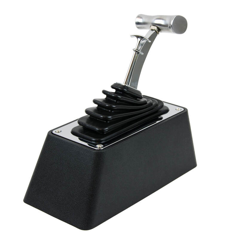 The B&M MegaShifter has it all, form, function and classic style. This all adds up to bring you a quality shifter that's been one of the most popular automatic shifters of all time. First off let's talk function. The MegaShifters positive ratcheting function won't allow you to over shift and miss a gear at that critical moment, along with the reverse lockout feature meets NHRA/IHRA safety rules for those weekend grudge races at the track. The look and feel of the T-handle and accordion style shift boot really shows off the racing heritage of the MegaShifter. Other features include a black console that you can trim to fit your vehicle's floor for a perfect fit, 5 foot shifter cable, cable brackets, transmission shift levers, chrome plated top plate with lighted gear indicator and everything needed for an easy at home installation. An optional T-handle with a 12-volt button is available separately for actuating a trans-brake, nitrous oxide or other accessories for the hard-core performance enthusiast. This shifter comes with all necessary parts for use with three and four-speed automatic transmissions such as 1966 and later Chrysler Torqueflite A727, A904, A500, and A518 transmissions. Ford C4, C6 transmissions. GM models TH 200, TH250, TH350, TH400, 2004R, 700R4, 4L60, 4L60E - 4L85E without PRNDL switch transmissions. For Ford AOD transmissions you will need installation kit #40496, AODE and 4R70W require installation kit #40504, E40D and 4R100 require installation kit #40505 and GM 4L60E - 4L85E transmissions with PRNDL switch require cable bracket #70499. Overall Dimensions - 13L x 6.6W x 12.6HFeatures:The B&M MegaShifter has it all, form, function and classic style. This all adds up to bring you a quality shifter that's been one of the most popular automatic shifters of all time. First off let's talk function. The MegaShifters positive ratcheting function won't allow you to over shift and miss a gear at that critical moment, along with the reverse lockout feature meets NHRA/IHRA safety rules for those weekend grudge races at the track. The look and feel of the T-handle and accordion style shift boot really shows off the racing heritage of the MegaShifter. Other features include a black console that you can trim to fit your vehicle's floor for a perfect fit, 5 foot shifter cable, cable brackets, transmission shift levers, chrome plated top plate with lighted gear indicator and everything needed for an easy at home installation. An optional T-handle with a 12-volt button is available separately for actuating a trans-brake, nitrous oxide or other accessories for the hard-core performance enthusiast. This shifter comes with all necessary parts for use with three and four-speed automatic transmissions such as 1966 and later Chrysler Torqueflite A727, A904, A500, and A518 transmissions. Ford C4, C6 transmissions. GM models TH 200, TH250, TH350, TH400, 2004R, 700R4, 4L60, 4L60E - 4L85E without PRNDL switch transmissions. For Ford AOD transmissions you will need installation kit #40496, AODE and 4R70W require installation kit #40504, E40D and 4R100 require installation kit #40505 and GM 4L60E - 4L85E transmissions with PRNDL switch require cable bracket #70499. Overall Dimensions - 13L x 6.6W x 12.6H