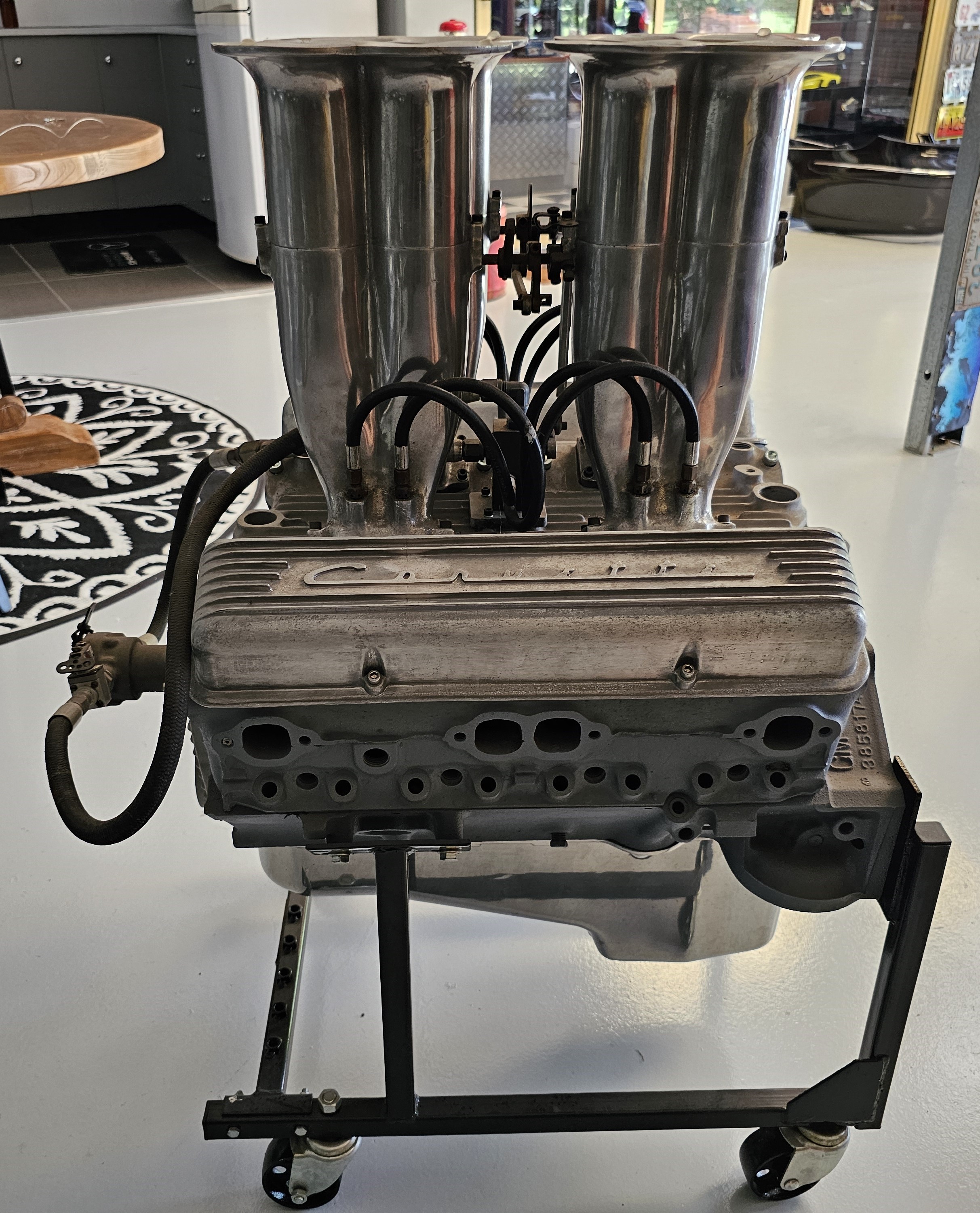 On new stand with genuine Pete Jackson injector system, Corvette alloy covers and finned alloy sump. Could be used as a coffee table.