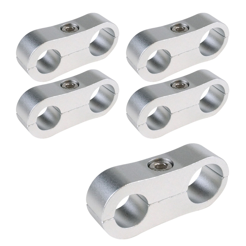 proflow billet aluminium hose & tubing clamp separators, 5 pack,, clamps, 13mm -16mm silver