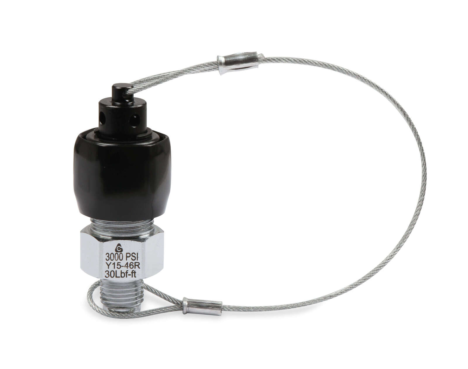 NOS BLACK Racer's safety adapter. For use with the NOS 2nd and 3rd generation Hi-Flo and Super Hi-Flo nitrous bottle valve. Features an AN -8 adapter with black diffuser cap installed