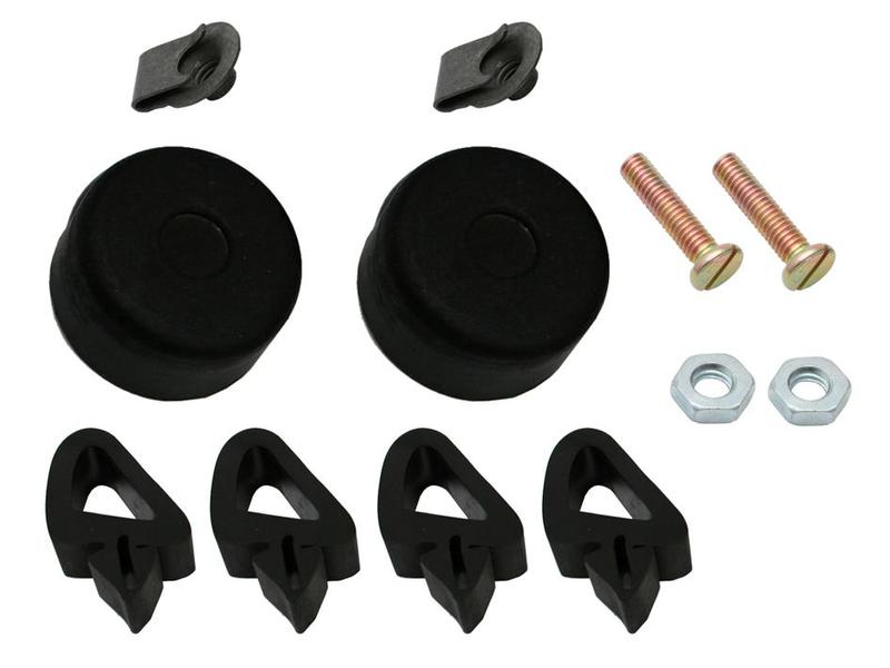 Bonnet (hood) rubber bumper kit with side rubbers, metal speed nuts which go in the radiator support panel, height adjuster screws and nuts, front adjuster bumper rubbers for the vehicle. To install the rubber in the bonnet lubricate the nose of the rubber, place nose of the rubber bumper into the bonnet hole using a pushing motion. Please note: The nuts go on the screws first to lock the screw against the radiator support panel clip then push/twist the round bumper over the screw head, then adjust the height so the bonnet is level with the guards. This product suits Holden HD, HR, HK, HT, HG, LC, LJ, LH and LX Standard, S, SL, DeLux, GTR, XU1, GPak, Sunbird, SS, SLR, SLR5000, L34, Hatchback Sedan, 2 Door Hatchback, Fitted with 4 cylinder, 6 cylinder Red and Blue motor 2250 (138), 2600 (161) , 2850 (173), 3300 (202), 8 cylinder V8 Red and Blue motor, 253, 4.2 Litre, 308, 5.0 Litre engine