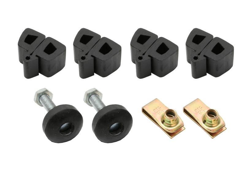 Bonnet (hood) rubber bumper kit which goes in the bonnet and the radiator support panel of the vehicle. To install the rubber in the bonnet lubricate the nose of the rubber, place nose of the rubber bumper into the bonnet hole using a pushing motion. Please note: The metal clips go in the radiator support panel, the nuts go on the thread first to lock the thread against the radiator support panel clip, then adjust the height so the bonnet is level with the guards and lock the nuts against the clips. This product suits Ford XR, XT, XW, XY, ZA, ZB. ZC and ZD Falcon, 500, Futura, Fairmont Sedan, Wagon, Utility (Ute), Panel Van Fitted with 6 cylinder 200, (3.2 L), 250, (4.1 L), 302 (4.9 L), 351 (5.8)L engine.