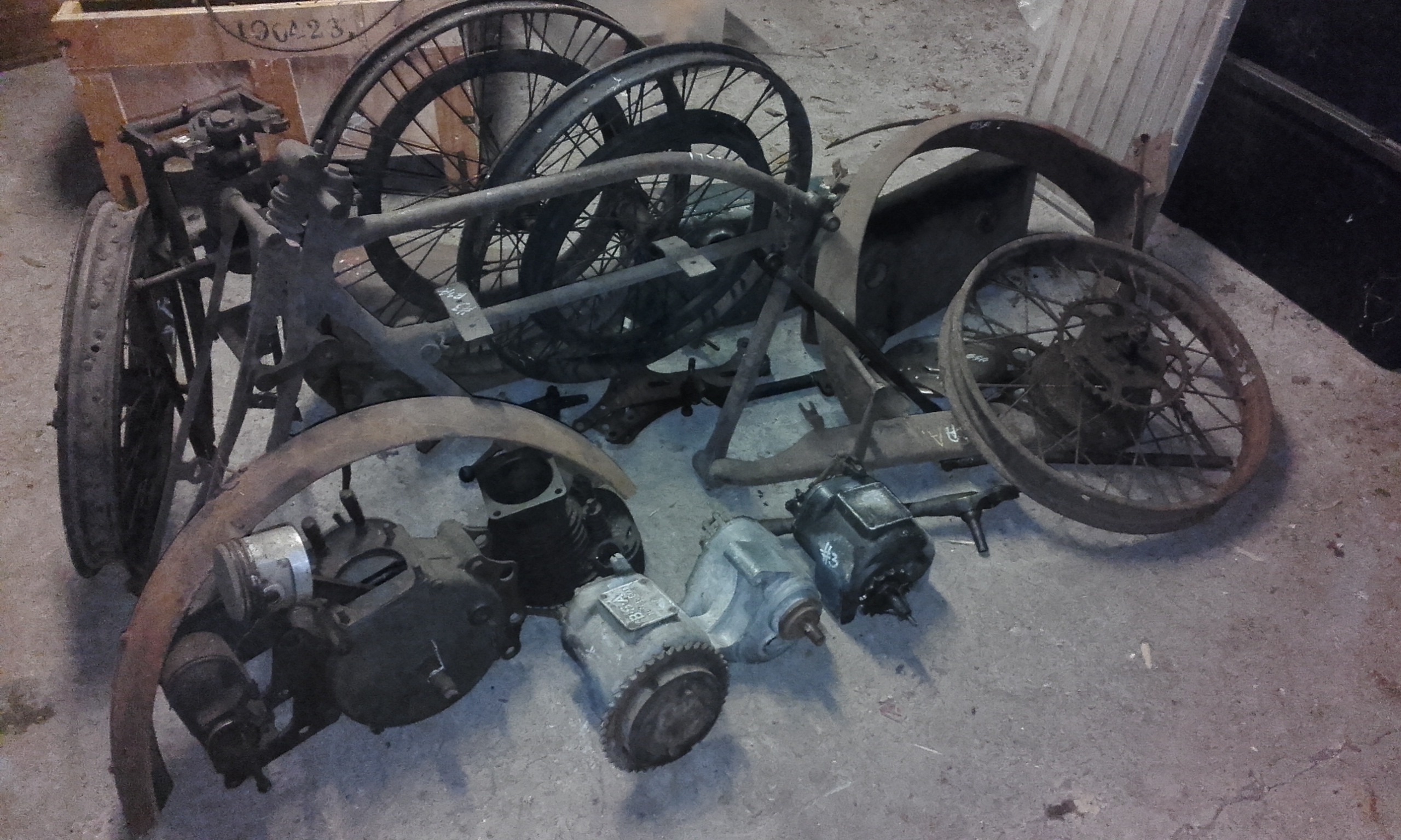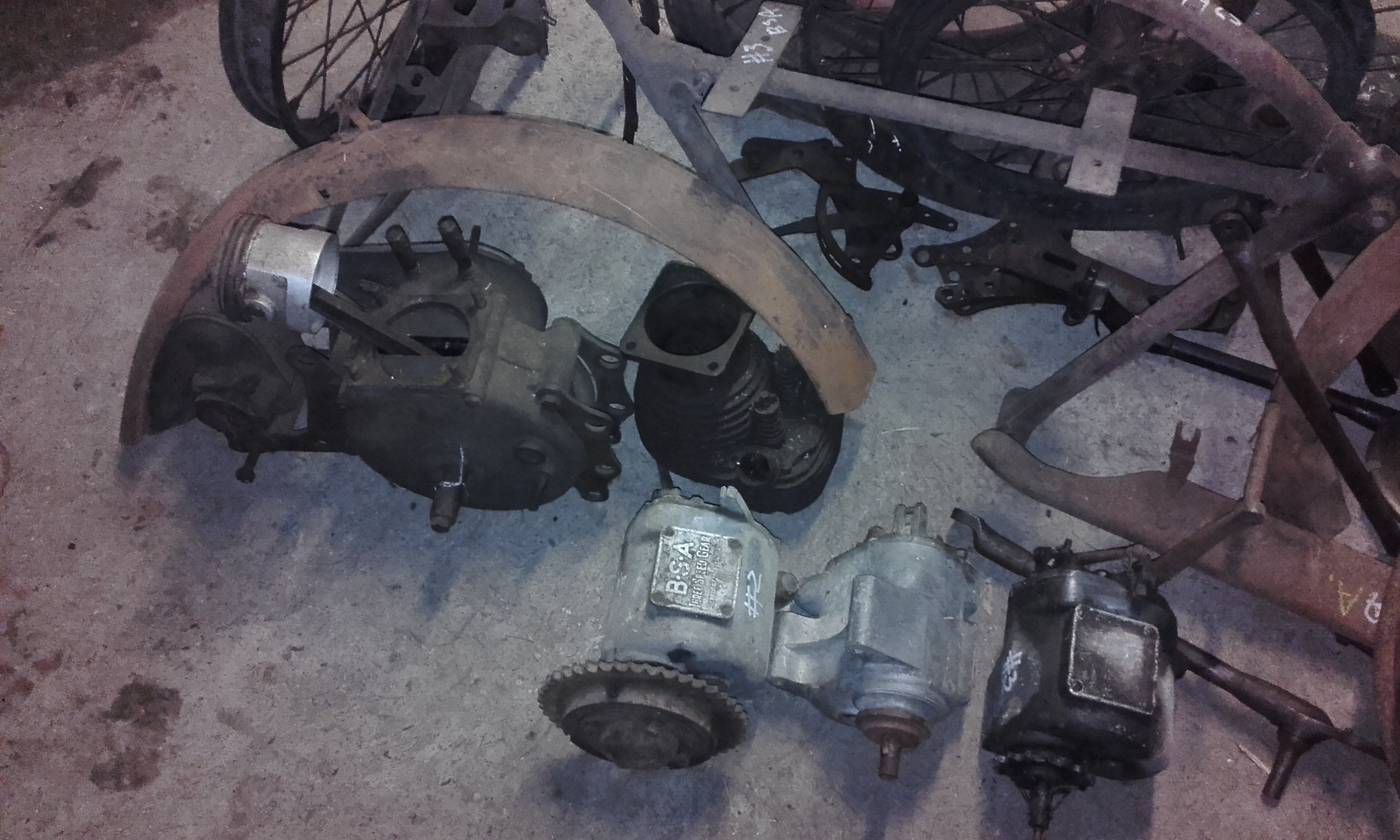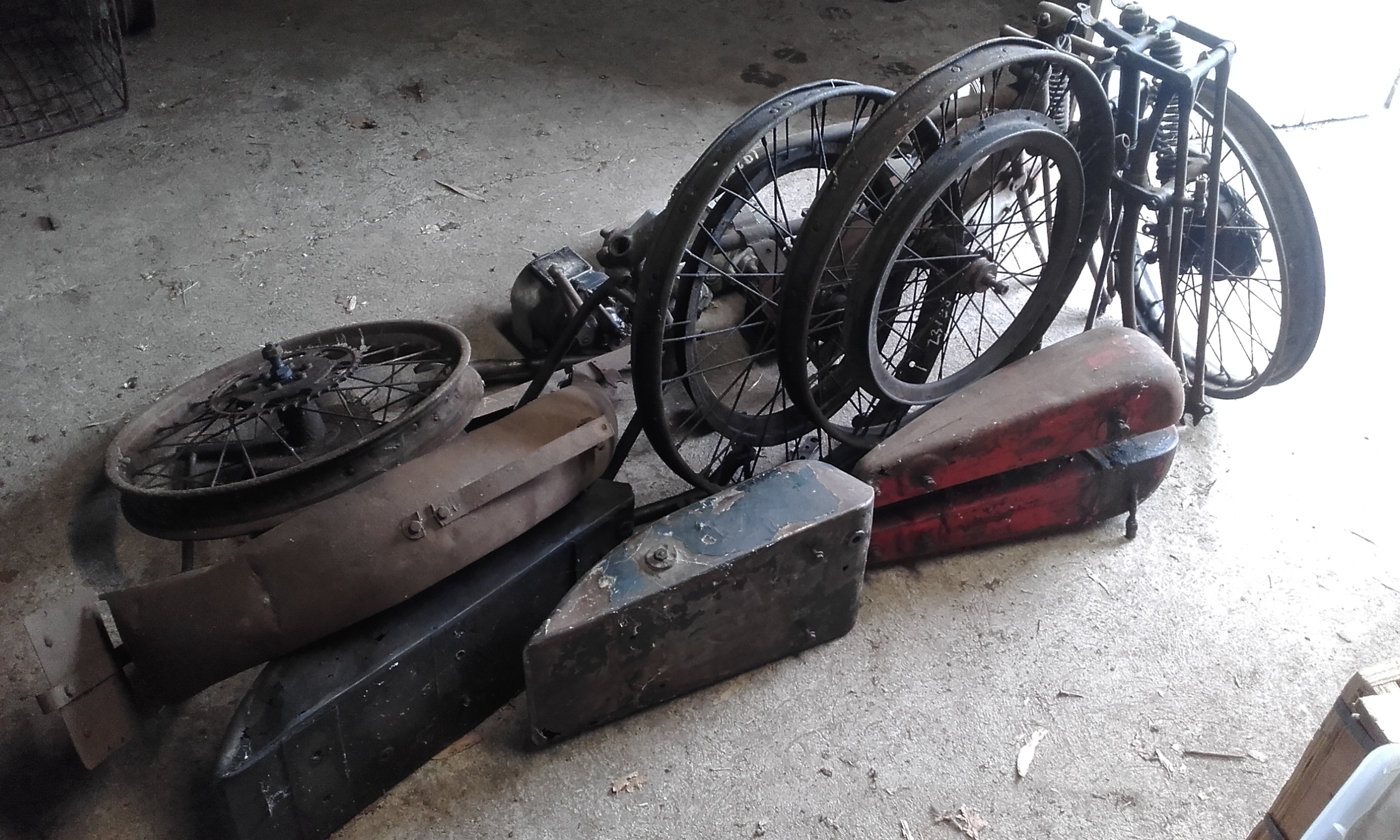 The following bundle of vintage (1926-1927) BSA 350cc motorcycle parts are for sale by way of best offer as shed clearance. The bundle consists of two frames (numbers available), 3 tanks (various models 1925-28), two sets of wheels (1 x beaded edge, 1 x well based), complete engine, three gearboxes (serial numbers available), guards, some tinware and multiple other parts. Please note this is not a complete motorcycle but there is substantial body of parts to permit an achievable restoration. Parts are currently located in Sydney but will be removed to rural NSW shortly. Contact: Jim. Email: [email protected] or phone (after 7:30pm)