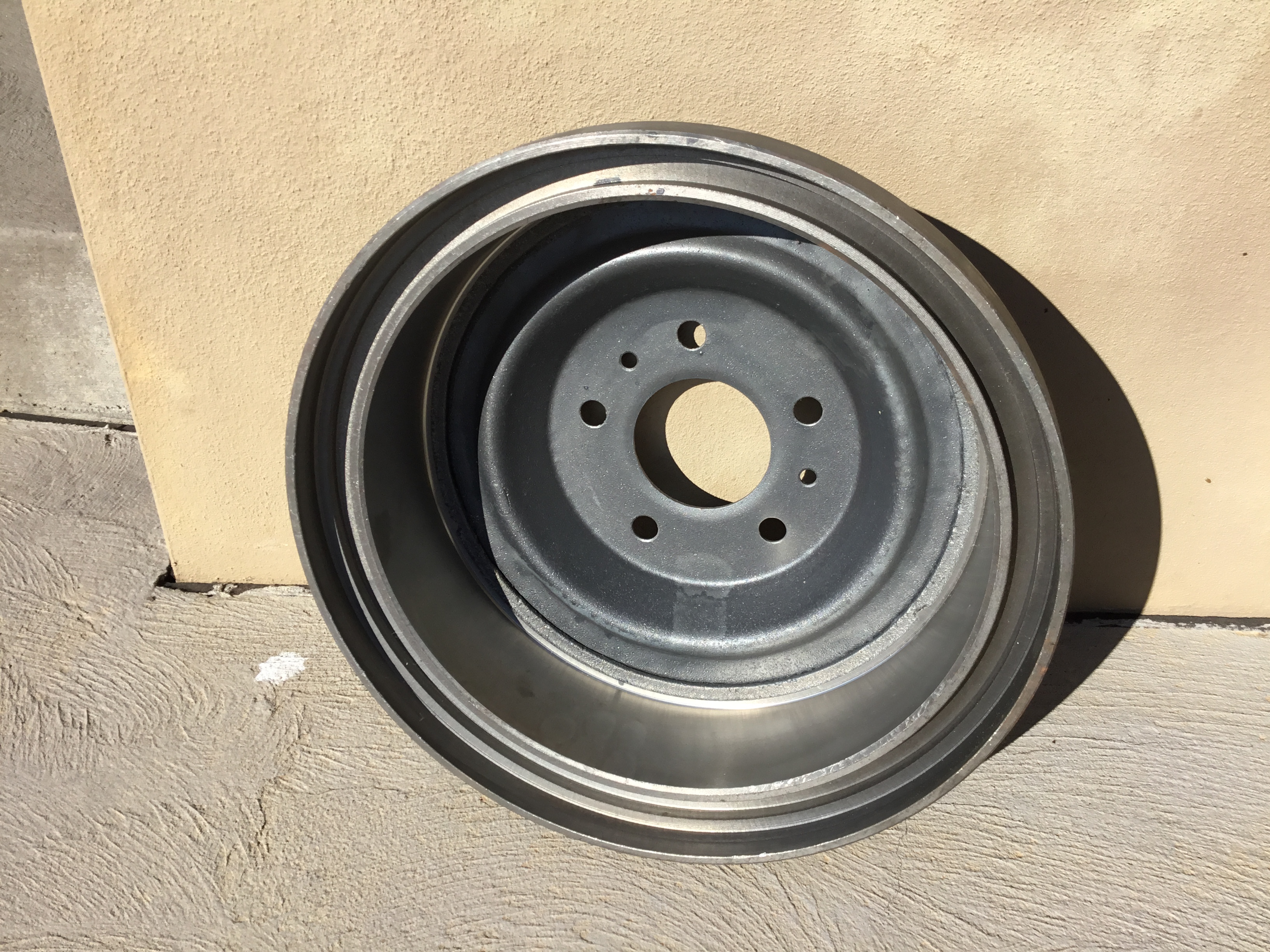4 Brand new Protex 12" brake drums suit 1959 - 1970 Cadillac rear with 5" stud pattern, 3" wide shoe, 3" centre hole, 5" total depth. May fit other GM cars with 12" brakes but you decide. $60 each. Should fit front also with a bit of minor machining.