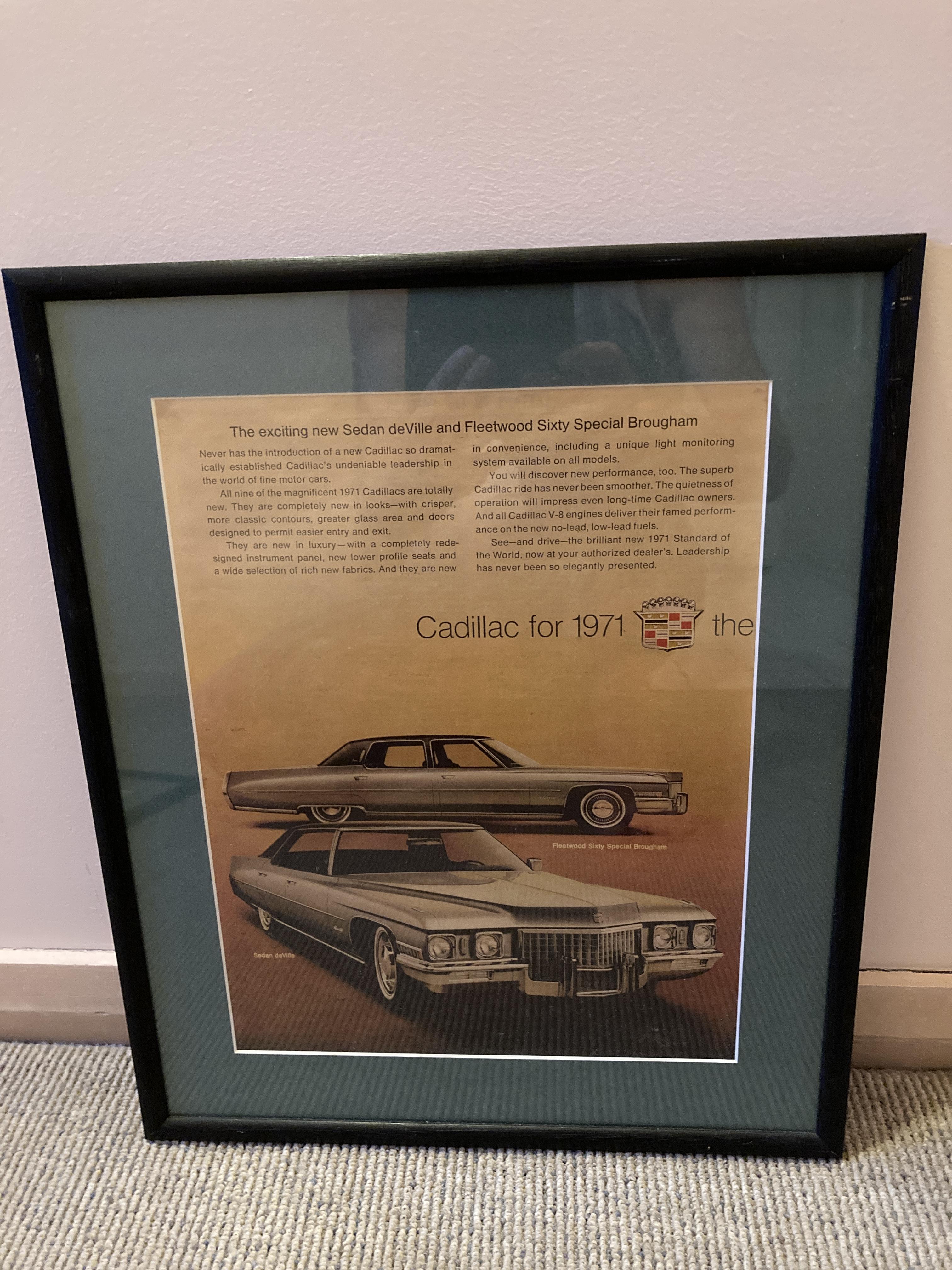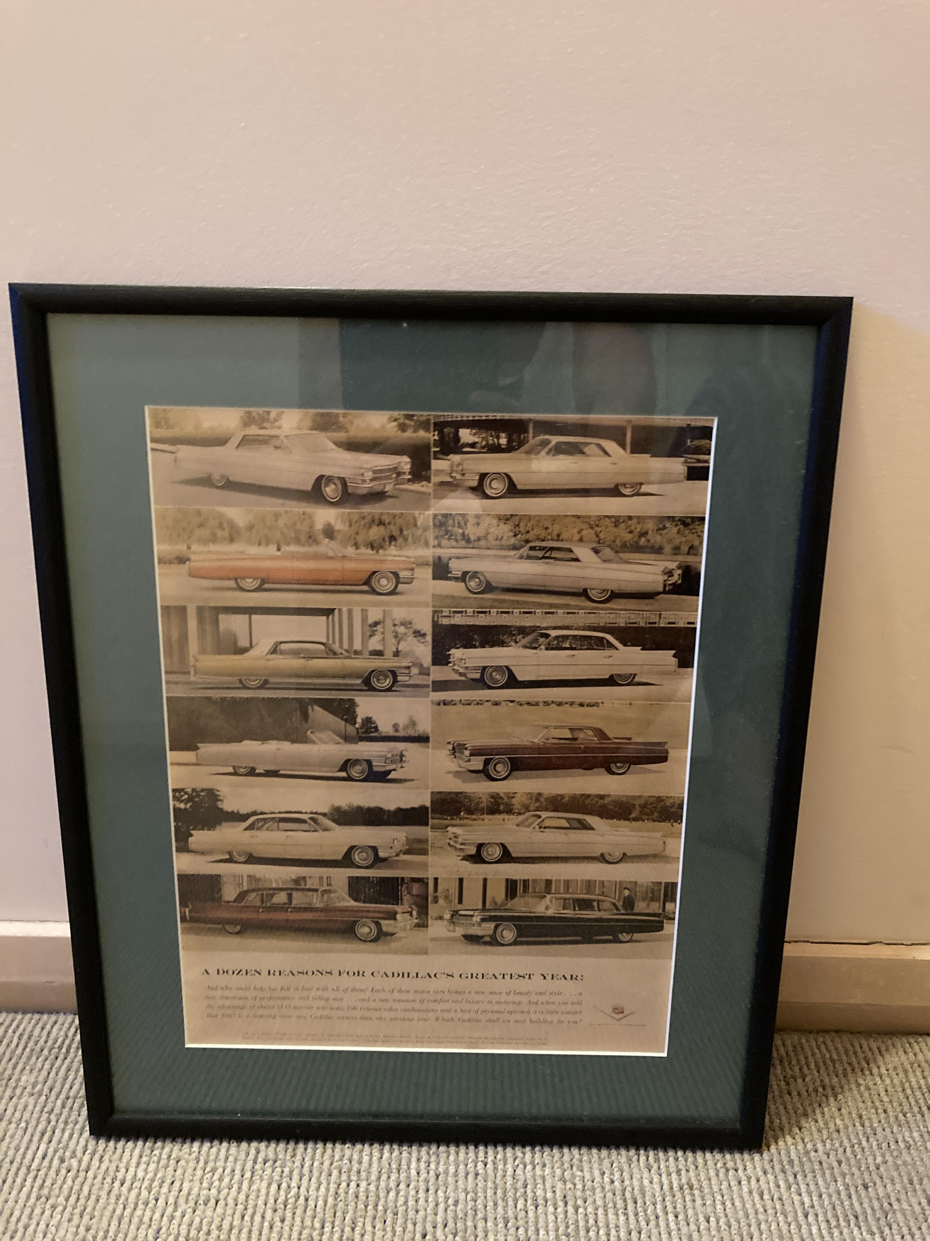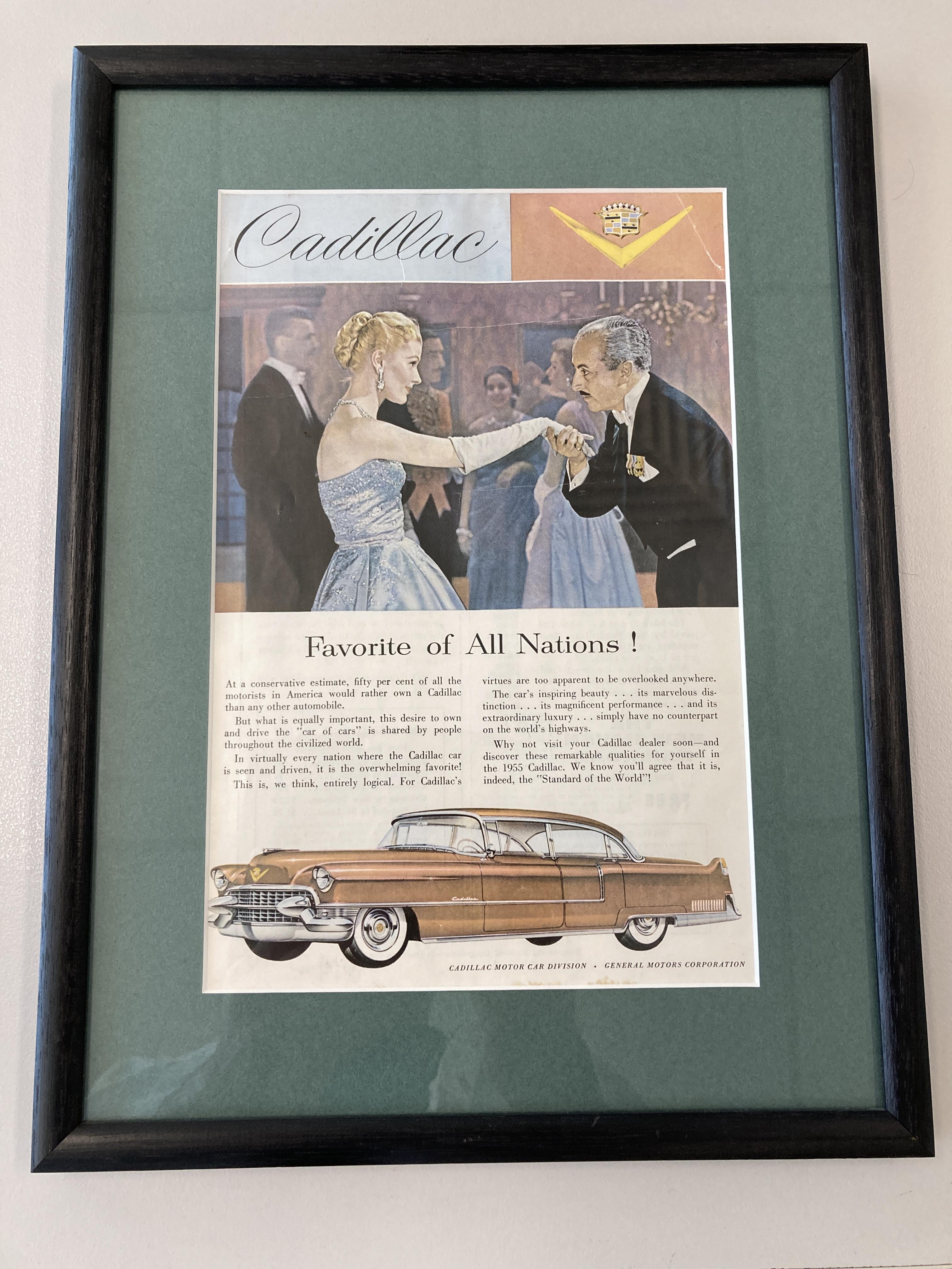 Framed, from the 1950's, 60's & early 70's. These prints are actual advertising pages from the magazines of that era.