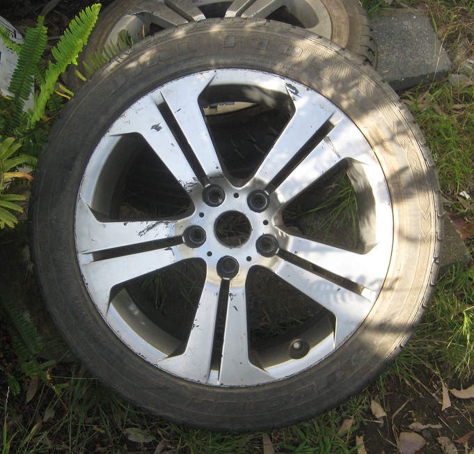 These 2 x 18” wheels come with one good 245 18” 70% tyre and one dead one.