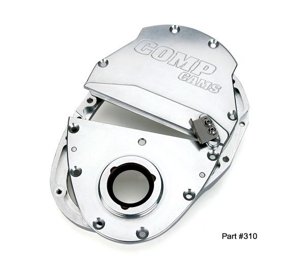COMP Cams 3-piece billet aluminum timing covers not only look good, but they work good, too. Save time and the hassle of breaking the oil pan seal when you need to change or adjust your timing chain or belt. Even with a thrust button, most stock stamped front covers flex under pressure, causing erratic ignition timing. These covers feature a rigid billet aluminum design that is strong enough to eliminate this flexing problem, hold your cam in place, and keep your timing in control. Endplay adjustment is made easy thanks to an access hole for the dial indicator. Plus, the 3-piece design allows your camshaft to be replaced without disturbing the oil pan seal or removing the harmonic damper. The covers use the same replacement hardware as the 2-piece models. In addition, some of these covers feature integrated time chain tensioner sets and quick-set cam correct and thrust adjustment.