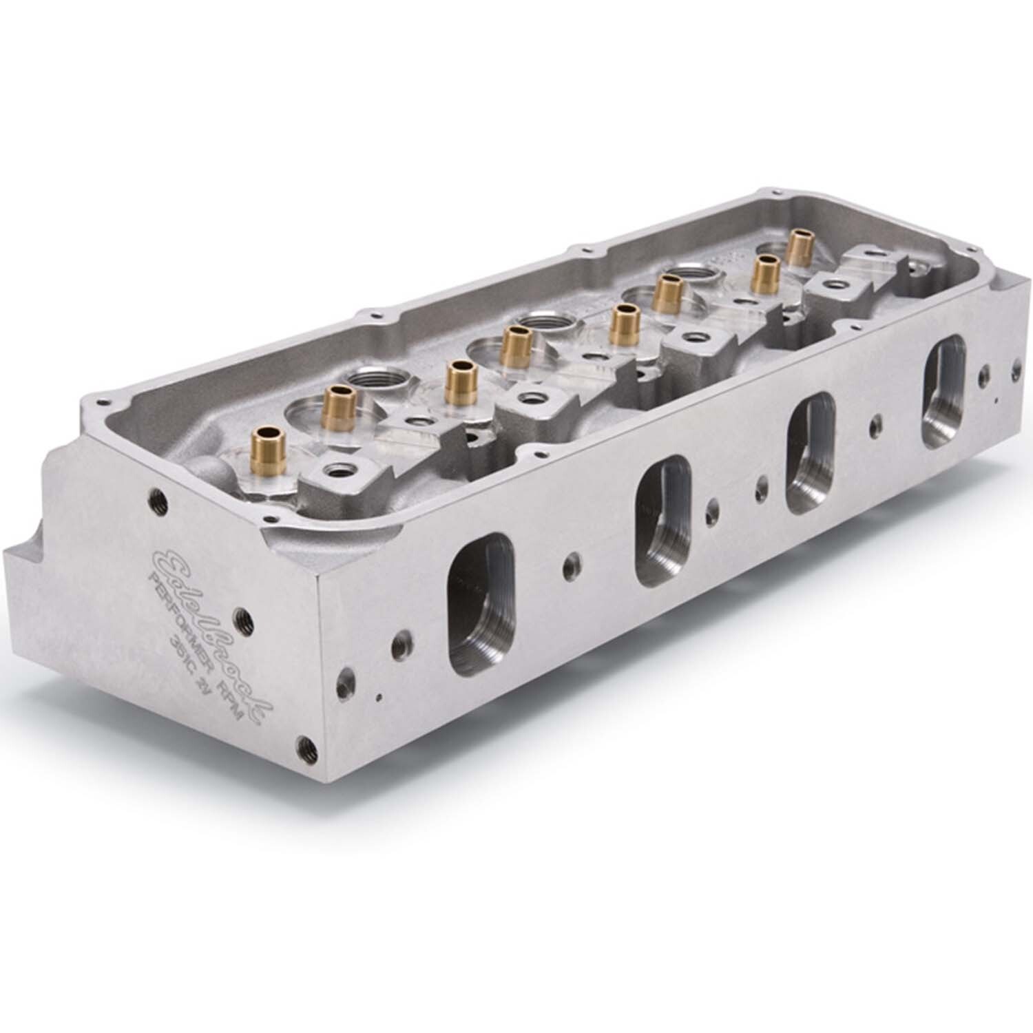 These Edelbrock Performer RPM aluminum cylinder heads feature threaded inserts in the rocker studs and exhaust manifold bolt holes for superior strength and durability. They also feature hardened seats, bronze valve guides, and fully machined valve cover rails for a more consistent gasket seal. They offer improved power throughout the rpm range for greater throttle response and top-end horsepower.