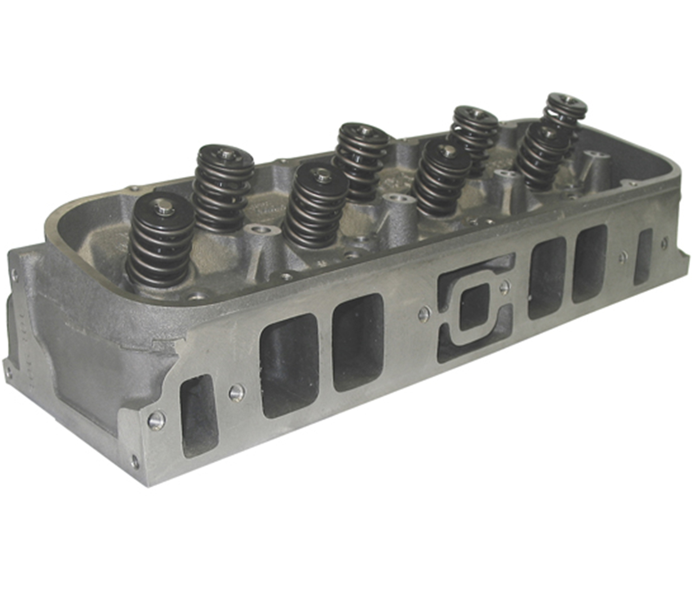 The cast iron MERLIN rectangular port design is available with intake ports in 320 and 345cc configurations. Choose the port size that will provide the optimum balance of flow and velocity for your engine combination. They are available bare or in complete assemblies that feature multi-angle valve jobs, Erson stainless steel valves and valve springs matched to camshaft requirements. World Products Merlin cylinder heads for big Chevys combine large intake runners with open combustion chambers to produce good torque and low-end power.