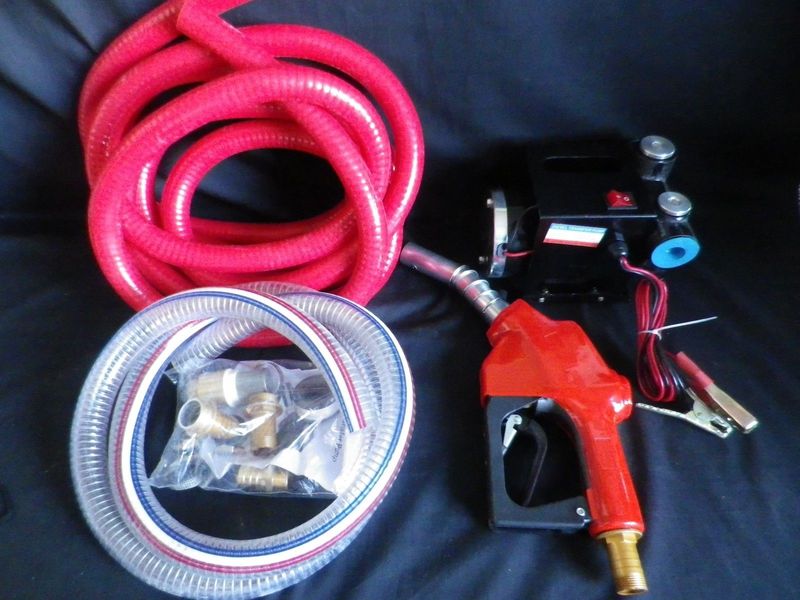 complete 12 volt 70 litre a minute pump 2 meter suction hose and filter 6 meter discharge hose automatic high flow gun