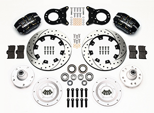 DP-DB Big Brake Front Hub Kits provide the added advantage of larger diameter brake rotors for traditional non-ABS spindles on American muscle cars and vintage rods. Dynapro Dustboot calipers, 12.19” diameter rotors, and high performance Wilwood brake pads generate big brake stopping power. These kits were developed for applications or locations that require or prefer a dust-sealed piston. Dust-boot sealed aluminum pistons provide added protection against road or track born dirt and debris on low to intermediate temperature range applications that may also operate in harsh environments. A full range of options for caliper finish and rotor design provide custom builders with the ability to personalize the style and performance requirements of the mildest to the wildest machines.