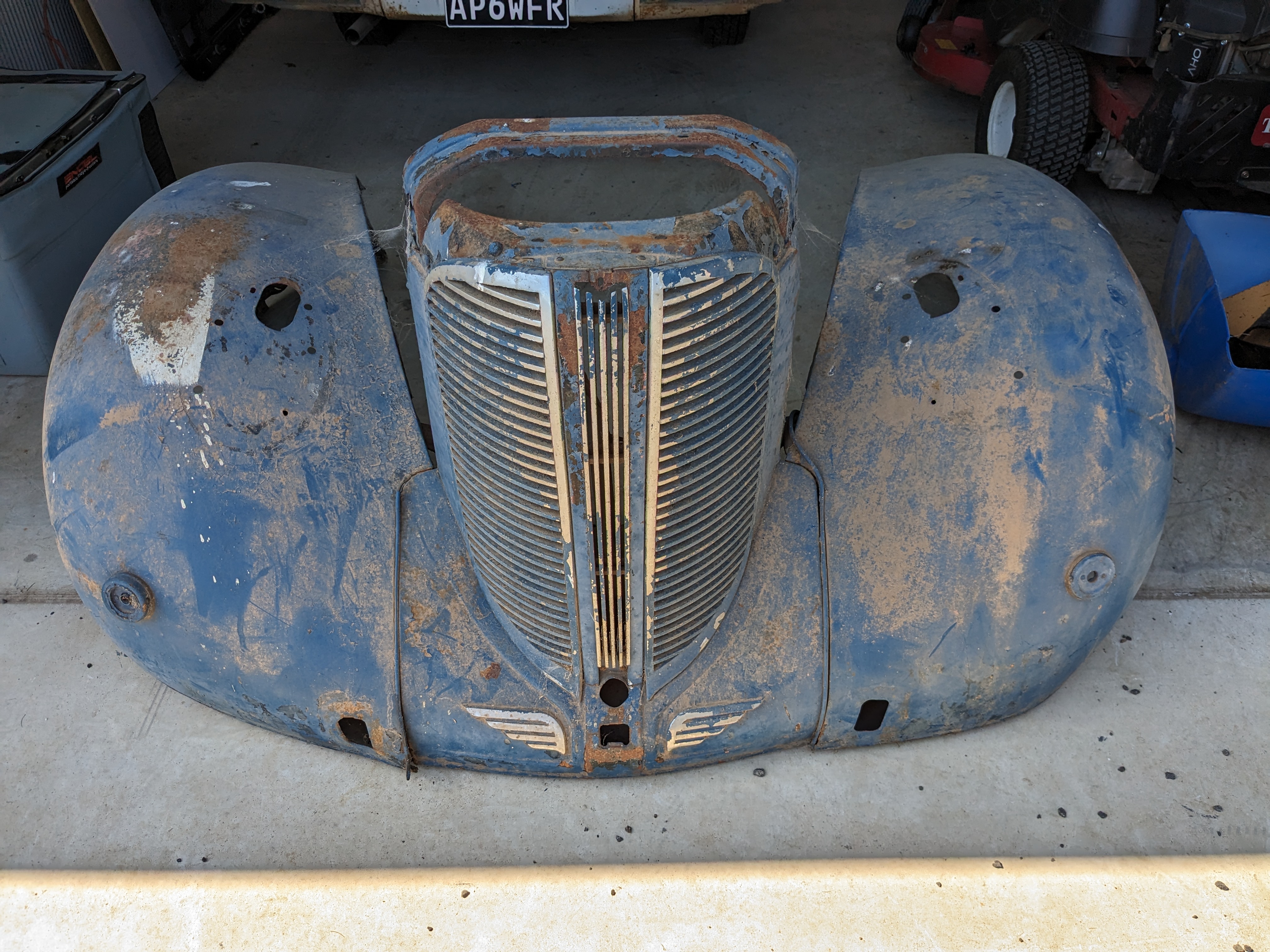 In exceptional condition for age. Straight and damage free. You won't find a complete front like this in better condition. This is an excellent investment for your Dodge or other project. Price negotiable.