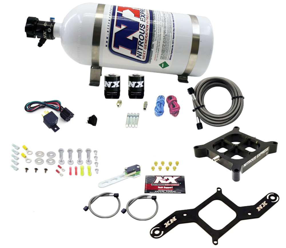 NX Single Entry Billet Crossbar nitrous plate systems provide the crossbar spray pattern that everyone loves in a package that is legal for racing classes that allow only one nitrous and one fuel jet. With no spray bars to sag, rotate or disrupt airflow, this is truly the Next Generation in cross bar nitrous plate technology.