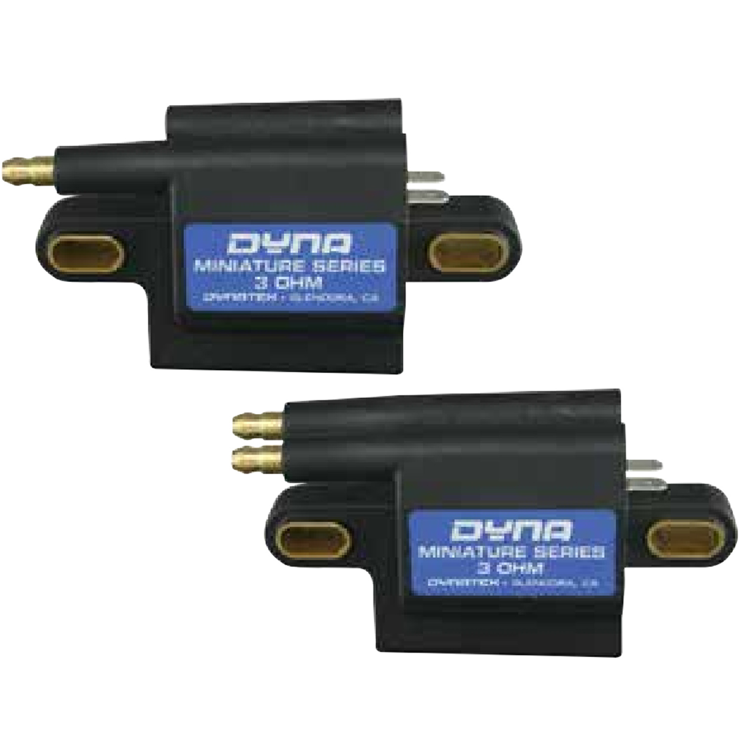 Advanced magnetic core technology delivers high output in one of the smallest packages available. Great for customs where coils need to be hidden. These coils are designed for use with the Dyna® 2000 and 3000 series ignitions, factory installed electronics, or other aftermarket ignitions that employ dwell control. Primary resistance: 3 ohms, secondary resistance: 11.5 ohms. Overall dimensions 4.2” x 2.3” x 1.6”, mounting centers 2.9” minimum to 3.5” maximum, approximate weight 9.8 oz. NOTE: These coils should NOT be used with the Dyna® “S,” Dyna® III or earlier generation ignitions.