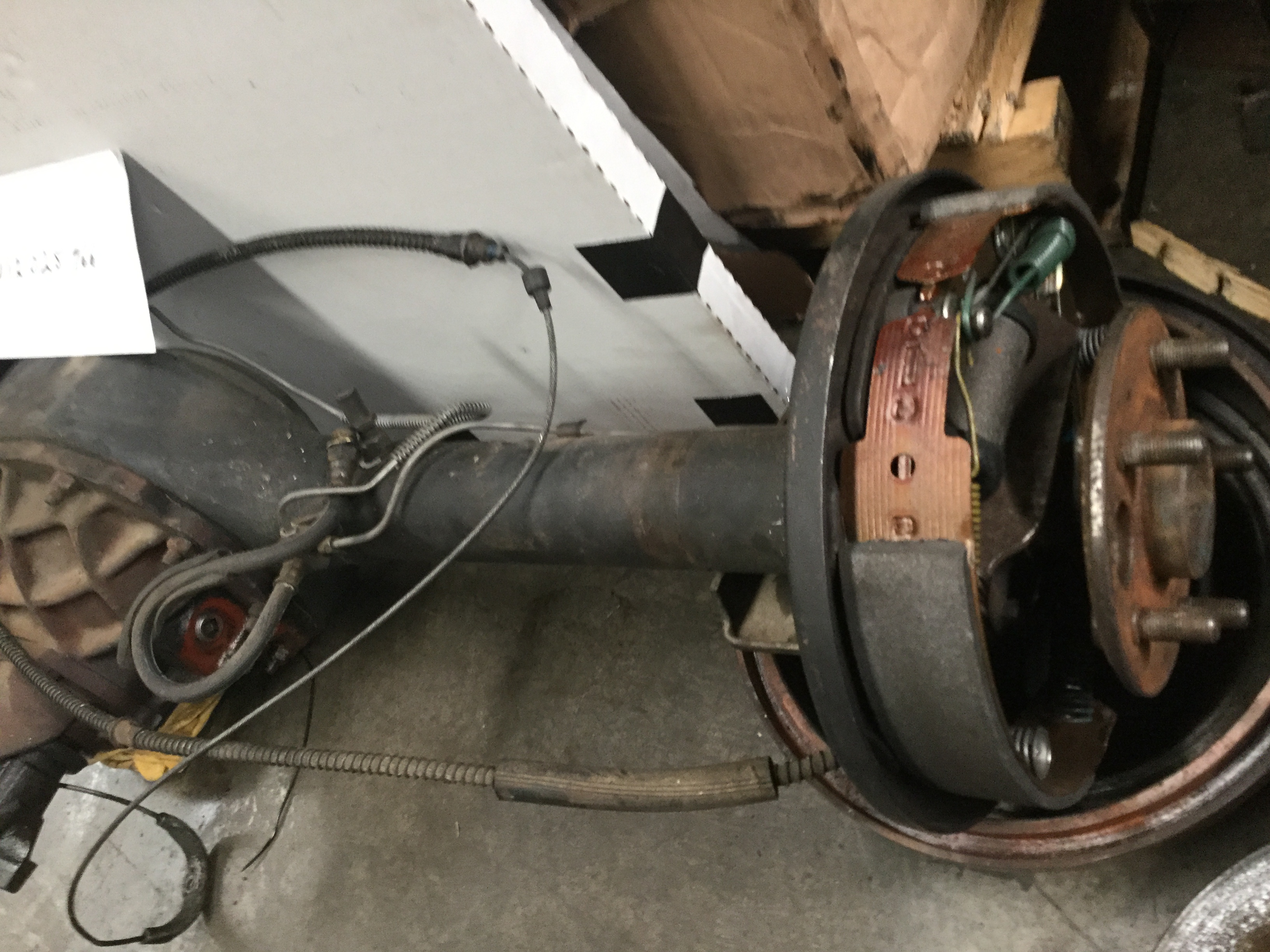 new brakes and wheel cylinders, new, has original hand brake cables, etc. part as pictured. Pulled and replaced with 9” rear. Good, working.