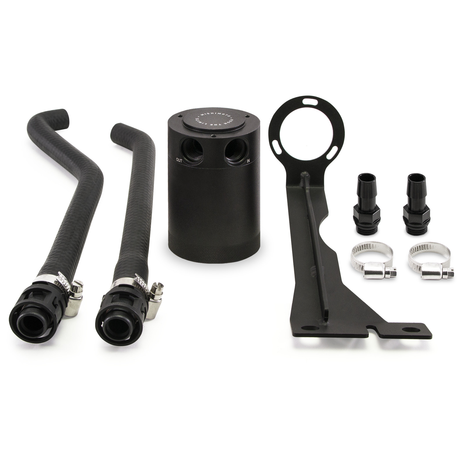 The Mishimoto Ford Fiesta ST Baffled Oil Catch Can is designed and engineered to reduce carbon buildup, a common issue with direct fuel injection engines. Thousands of test miles were logged on our Fiesta ST to determine what can setup would work the best. Mishimoto engineers found that most vehicles, placing the catch can in the vacuum assisted PCV system of the vehicle will yield the most amount of oil accumulation during normal and aggressive driving. Where a catch can placed on the crankcase vent system on the left side of the engine will yield nearly no accumulation on stock or lightly modified vehicles. Having only one catch can, tied into the PCV system will, by far, work the best for the vast majority of Fiesta ST's on the road. The Mishimoto Ford Fiesta ST catch can kit uses the Mishimoto 2-Port Compact Baffled Oil Catch Can with a bronze filter, and internal baffled to better separate the oil from the crankcase vapors. The kit comes with two direct-fit silicone hoses with pre-assembled quick-disconnect fittings for a simple installation. It also includes one direct fit mounting bracket that not only is extremely easy to install but also mounts the can in a serviceable location! Two CNC-machined aluminum, " barb fittings connect the hoses to the can. Like all of our products, this baffled catch can kit comes with the Mishimoto Lifetime Warranty! Our catch cans are different from most air-oil-separator (AOS) systems on a few levels. First, our catch cans are not heated. This means that all of the blow-by is able to condense in the can, including low-octane oil vapors and contaminated fuel vapors. Most AOS systems also drain the blow-by back into the oil pan, while our catch cans trap the blow-by and keep it out of the engine permanently. If you've seen what we've seen in the bottom of our catch cans, you won't want that draining back into your oil either.