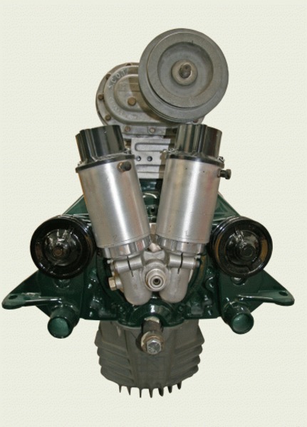 Dual Vertex Magneto Angle Drive (1932 to 1948) This cam-driven Dual Vertex Angle Drive is one of the rarest aftermarket Ford flathead V8 engine accessories ever manufactured! It is specifically designed to be used on a 1932 to 1948 Ford 59A flathead engine utilizing cylinder heads with two spark plugs per cylinder, such as the ELCO twin spark plug cylinder heads. This dual vertex angle drive is a 100% accurate reproduction of an accessory drive originally introduced in the early to mid-1950. It will accommodate two four cylinder Vertex magnetos for a single plug cylinder head application or two V8 Vertex magnetos for a twin plug application. The Vertex magnetos shown are for demonstration purposes only, and are not included with the angle drive. Unlike other dual magneto angle drives like the Barker, it positions the Vertex magnetos in a nearly vertical position, thus eliminating a lot of interference problems with fan belts and other external engine accessories. NOTE MAGNETOS NOT INCLUDED...