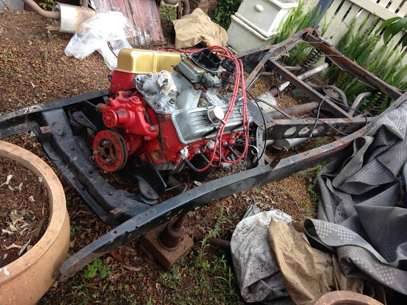 1934 ford original chassis (hotrod) in good condition all crossmembers are there. This chassis was under a rego'd hotrod from the 60's all the way till 2008. It has 8 1/2" ford diff and jag coilovers trailing arm setup drum brake rear watts linkage all ready to go. 283 CHEV "worked" now around 327ci larger valves rebuilt heads etc good strong engine. 4 speed manual chev Saginaw all still mounted in chassis with tailshaft. 2 1/2" exhausts. Represents a cheap easy way to get a hotrod on the road as half the works done. Selling on behalf of father.NO SWAPS. $12000 call or text msg for more details.