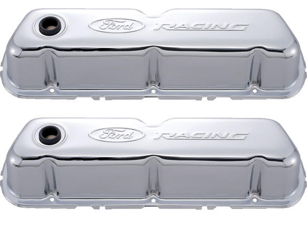 These premium stamped steel valve covers are offered in a deep chrome plated finish with Ford RACING embossed prominently on the top. All valve covers include baffles and grommets. Sold in pairs.
