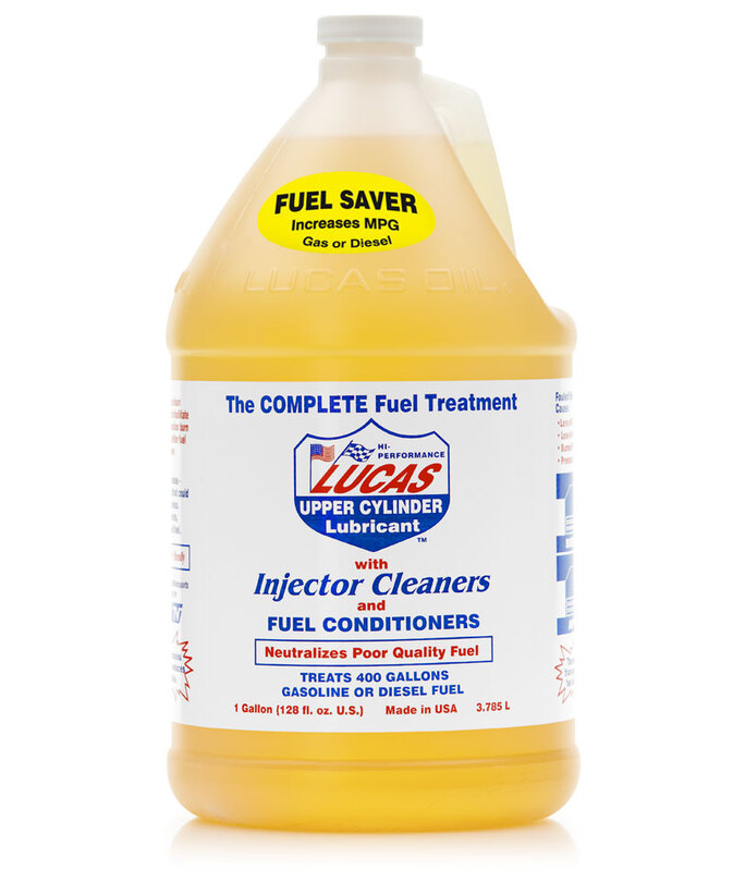 Lucas Fuel Treatment is formulated for both gasoline and diesel engines, carbureted or fuel injected. It gives your fuel system what it really needs - a blend of super slick oils and additives with a high detergent action that allows the engine to operate at maximum efficiency. Also, it cleans and lubricates the carburetor and injectors and causes the fuel to burn more thoroughly for increased power and less fuel consumption. Lucas Fuel Treatment should definitely be used in vehicles that require leaded fuel because it actually replaces the benefits of lead in gasoline without causing harmful emissions. Use it to pass smog tests. Finally, it totally neutralizes the harmful effects of low sulfur diesel fuel.