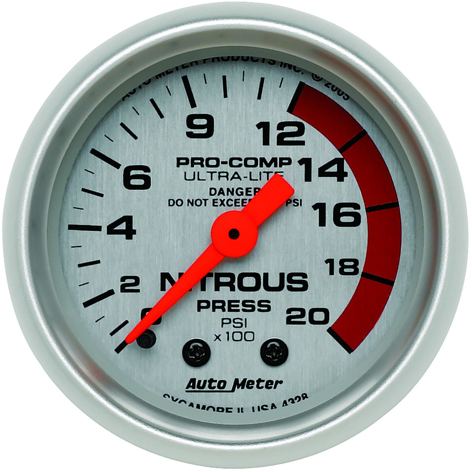 A bomb proof meter movement in the Auto Meter Mechanical Nitrous Pressure Gauge provides the robustness necessary to deal with ultra high pressures found in your brake system. These race proven gauges back up their toughness with the most precise bourdon tube meter movement available for unparalleled accuracy. A -4an connection on the rear of the gauge simplifies installation and no electrical connection is necessary for operation, making it ideal for hardcore track cars.