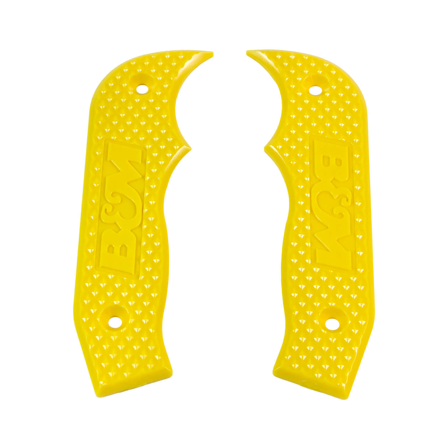 Now you can customize the look of your Magnum Grip shifter and shift handles with these bright yellow replacement side grip plates. Constructed from durable polycarbonate and feature a textured diamond pattern for a sure grip and good looks. Also offered in numerous bright colors allowing you to customize the look of your vehicles interior by adding a splash of style. Be sure to check out our real rosewood side plates and CNC machined billet aluminum side plates available with, or without a 12v momentary switch.
