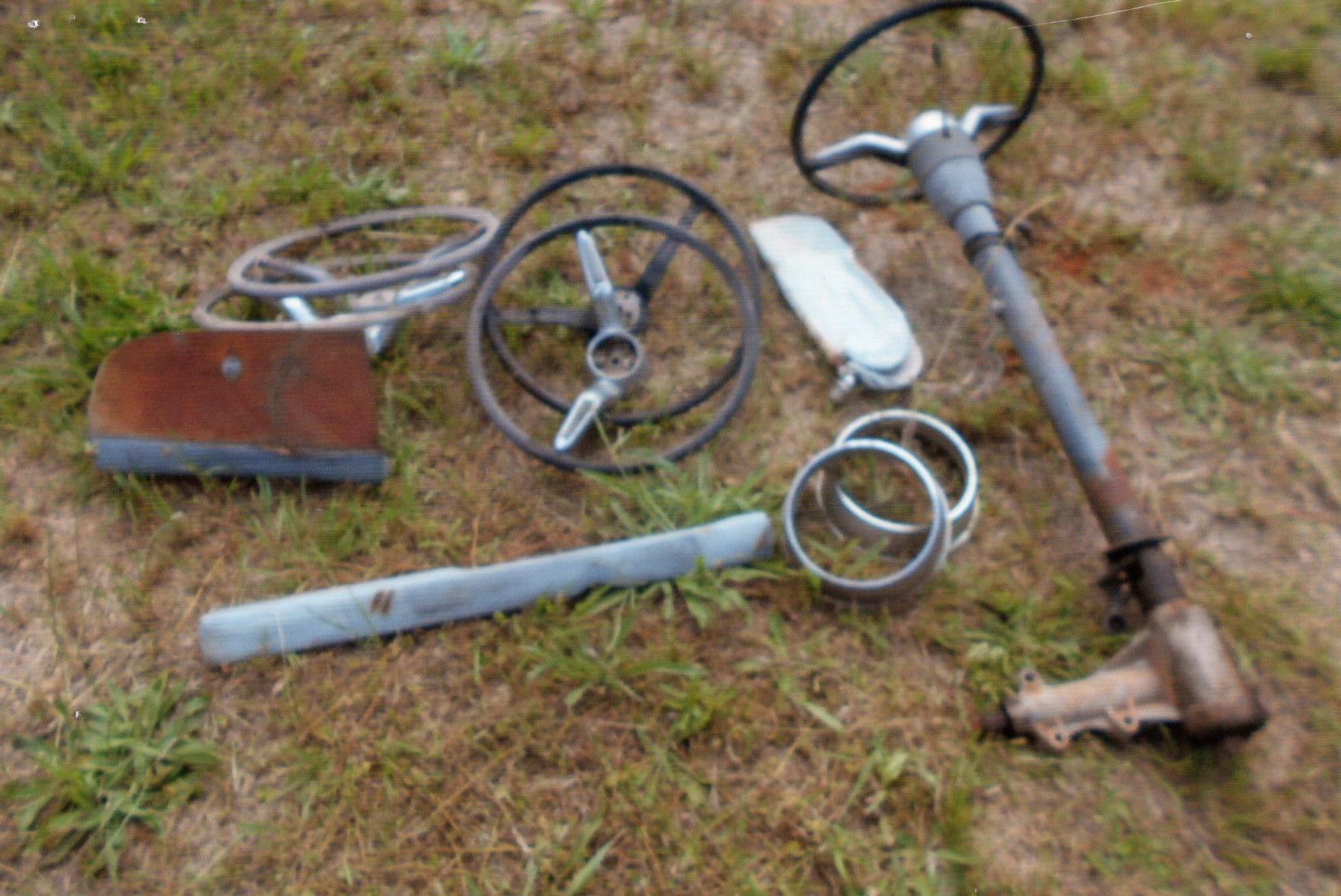 4 steering wheels, glovebox lid, dash pad part, complete steering column and box, sunvisor, pair of headlight surround.