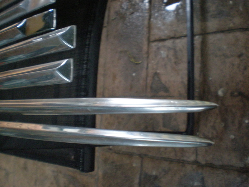 Stainless body mouldings. Near complete missing L/H rear 1/4 moulding. Package consists of 10 mouldings. 2 L/H & 2 R/H rear door moulds. Text for more pictures