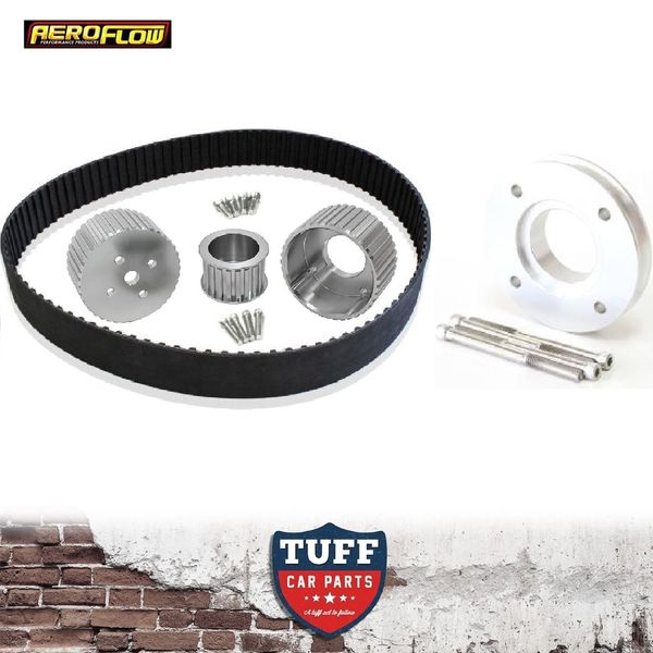 Aeroflow belt drive kits come complete with crank, water pump and alternator pulleys. Included with the kits are chrome bolts for both the crank and water pump pulley and a high quality Aeroflow belt.