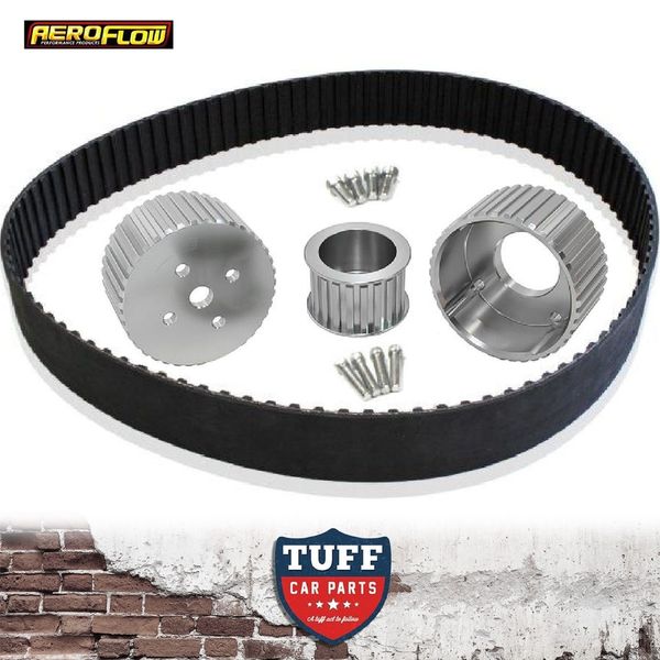 Aeroflow belt drive kits come complete with crank, water pump and alternator pulleys. Included with the kits are chrome bolts for both the crank and water pump pulley and a high quality Aeroflow belt.