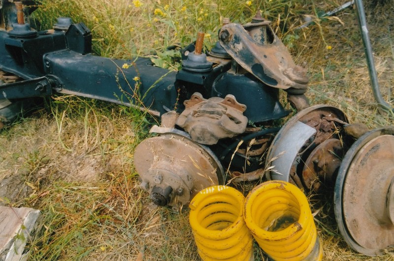 disc brakes front end with HK V8 springs $1,000; bench seat $750; banjo diff with springs, shocks $750; 3 spd syncro floor changer, dello hydraulic slave.