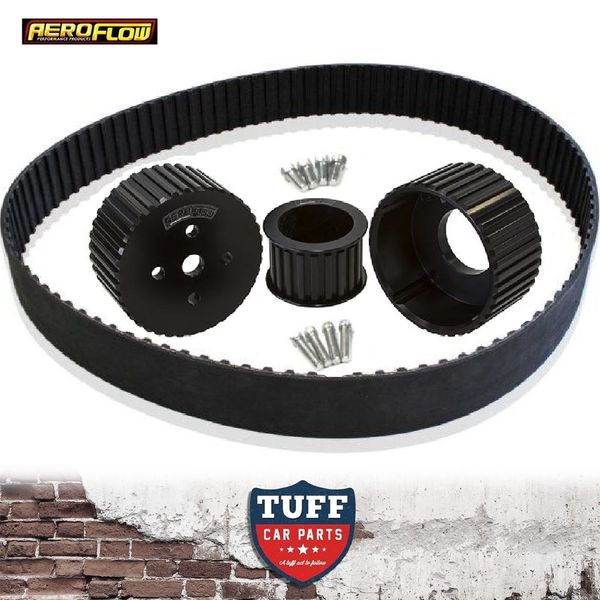 Aeroflow belt drive kits come complete with crank, water pump and alternator pulleys. Included with the kits are chrome bolts for both the crank and water pump pulley and a high quality Aeroflow belt.