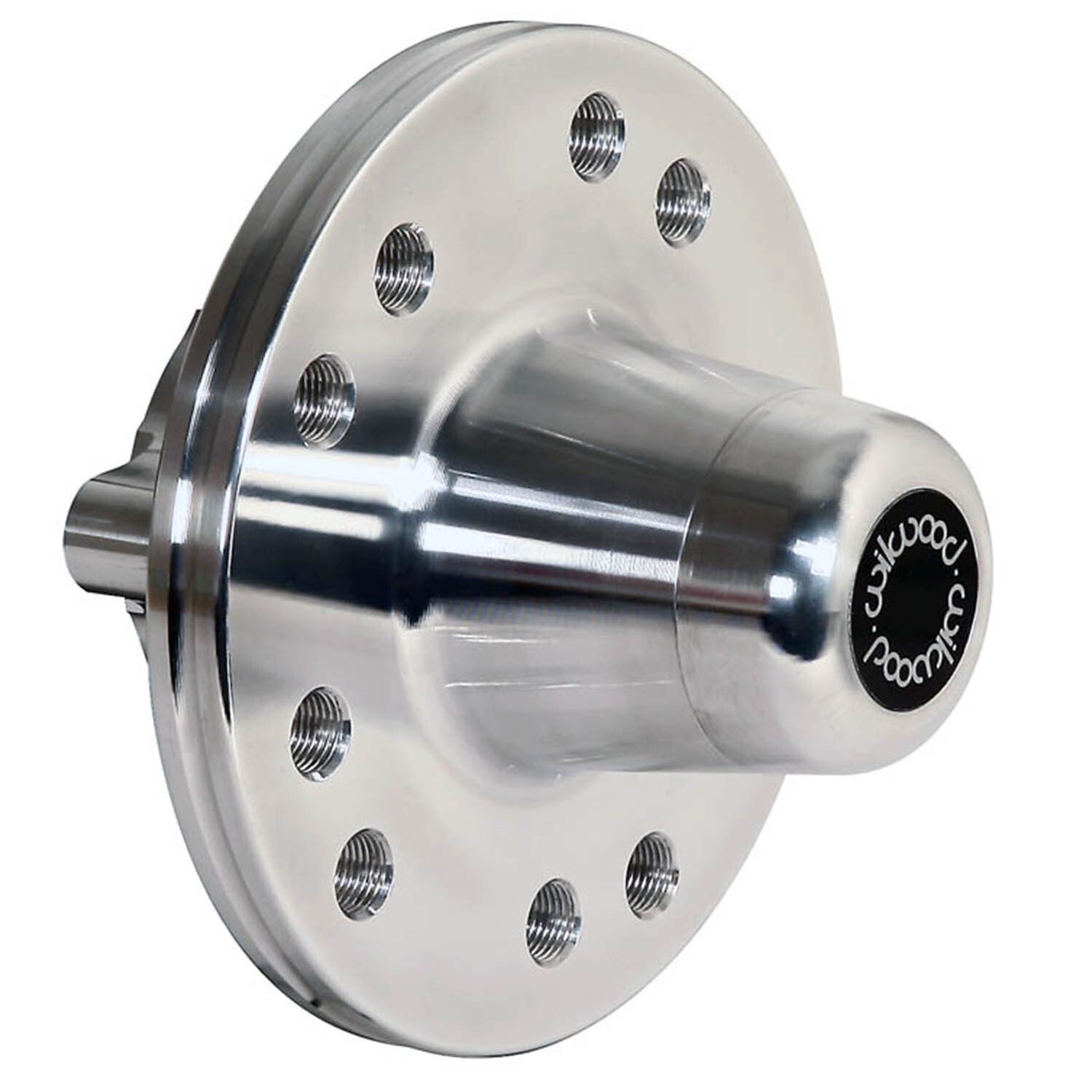 Forged Billet Aluminum Vented Rotor Offset Hubs are made from premium grade alloy billets are forged into shape under high heat and pressure, then CNC machined for precise fit on each spindle application. Intended for use with intermediate adapter plates with vented .81” width rotors, but can also be used with aluminum mounting hats for custom applications. This specific hub is double drilled with a 5 x 4.50" / 5 x 4.75” wheel lug pattern. Hubs include bearing races and screw-on aluminum caps.