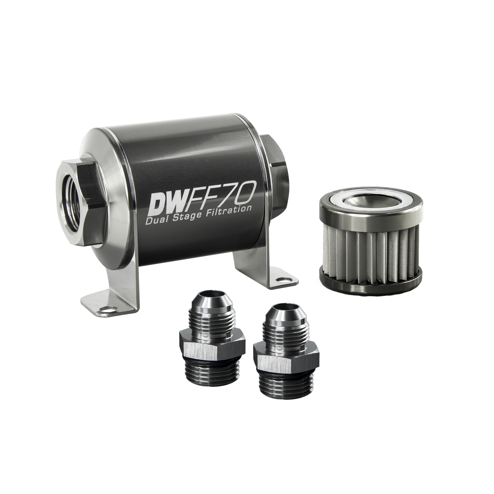 In-line fuel filter element and housing kit, stainless steel 10 micron,-8AN,70mm. Universal