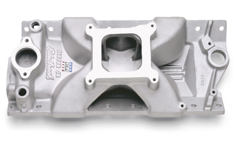 These versatile manifolds are excellent for many applications from high-performance street to drag/circle track racing. They provide maximum performance for engines with standard port location, iron and aluminum cylinder heads. The low-profile of the #2975 works well in applications with minimal hood clearance and where 1" or 2" spacers can be used for performance tuning. When carb spacers are not allowed, the #2999 should be used. #72975 features a pre-assembled ready to bolt-on direct port nitrous system out-of-the-box! The Victor Jr. Port Matched manifold has CNC-blended port exits that match any competition head using Fel-Pro gasket #1206.