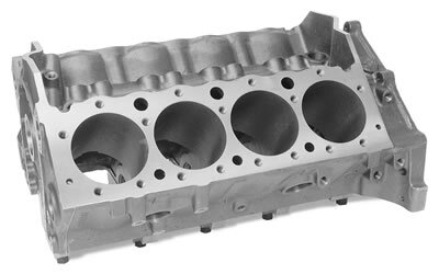 Race block available with tall deck and with raised cam location. Provisions for wet or dry sump oiling systems. Maximum effort racing engines.