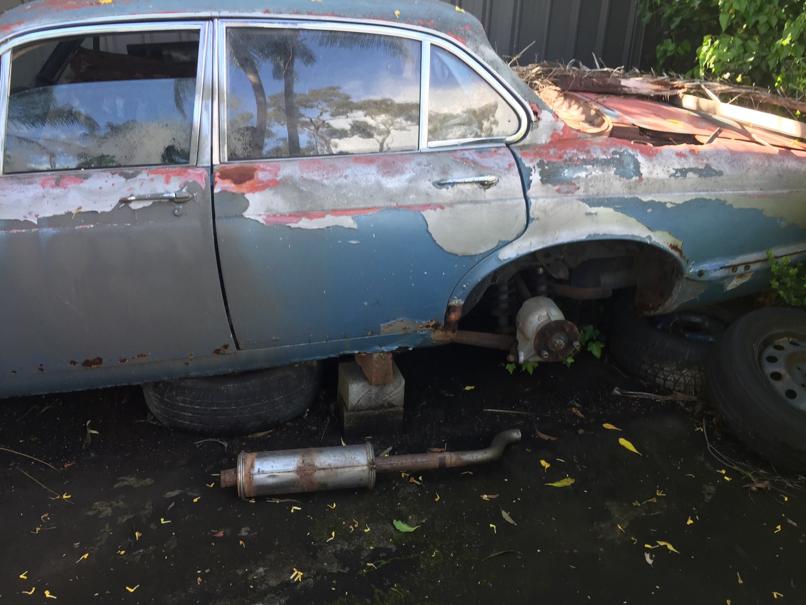 Whole car - all parts including 4.2 litre engine, auto transmission, rear suspension and diff wheel to wheel reconditioned 40k ago. Front end and steering reconditioned 10k ago, all body panels, all chrome including grill, whole car. All body panels including guards and doors very straight but rust along bottom channels. Bonnet rust and dent free. Stainless steel exhaust and mufflers. Do not want to separate unless extreme offer for specific parts. Car has been sitting for 20 years.