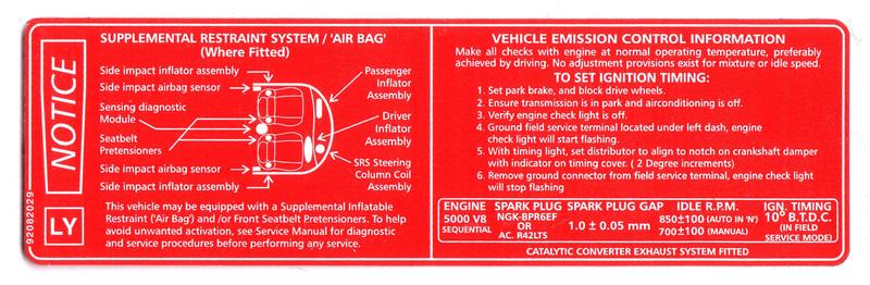 LABEL VEHICLE EMISSION / SRS NOTICE VT SERIES 1