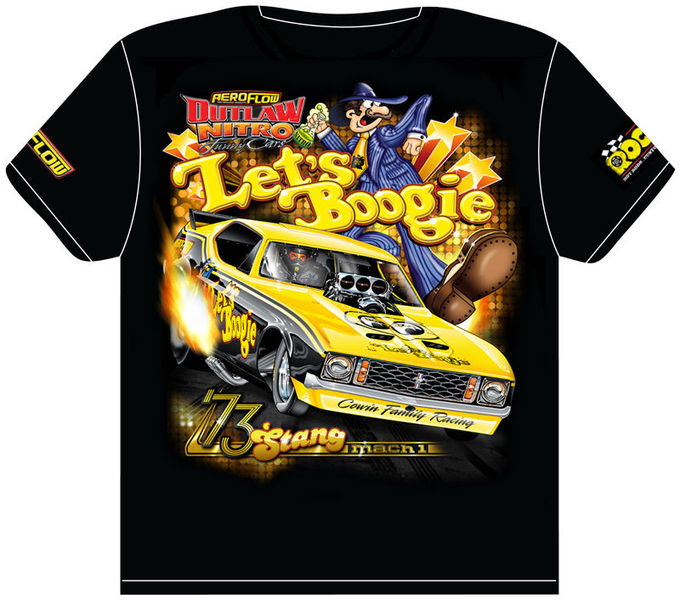 Aeroflow Outlaw Nitro Funny Cars T-Shirt 'Let's Boogie' Mustang (ADULT SIZES)